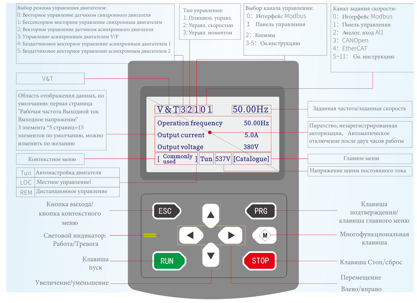 Описание функций ЖК-дисплея панели управления